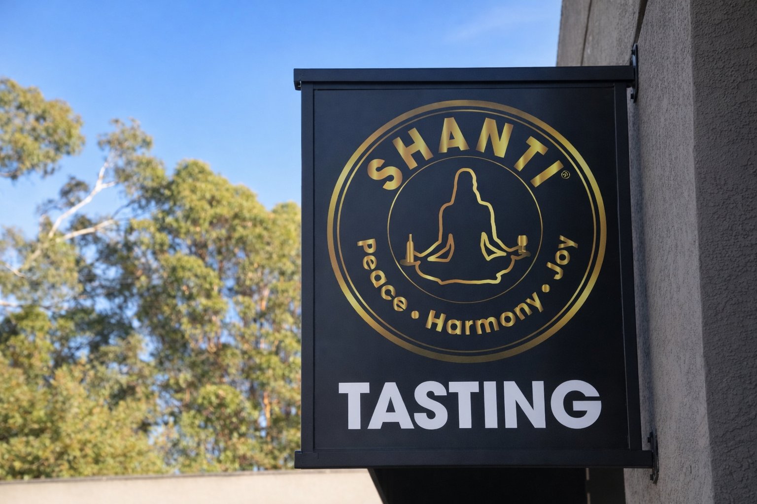 One winery in particular played an important role in the founding of Shanti Wines. While tasting at this boutique winery on the southern part of Silverado Trail they connected with one of their long time wine educators, CJ. And during one particular tasting at this winery, Ray commented to Sharma about how relaxed and peaceful it felt. They decided to use the name Shanti to honor not only their own heritage, but also the word in Sanskrit means peace or having an inner peace. The words peace, harmony and joy are an integral part of their own philosophy. And Ray designed the logo himself, an image of a person meditating.