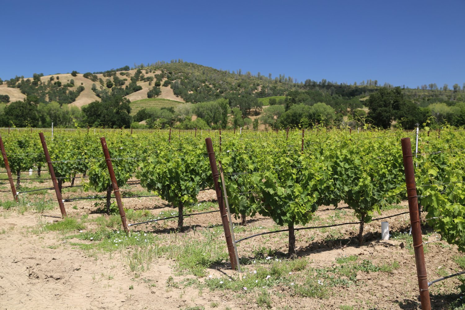 Today this huge and very scenic ranch is planted to nearly 500 acres of grapevines (in what is unusual for a Napa Valley winery, the majority of their vineyards are planted to Sauvignon Blanc with lesser amounts of Cabernet Sauvignon and other varieties) among about 1,000 acres of natural habitat. The ranch also is planted to over 1,200 fruit trees including many lining the ranch’s primary dirt access road. The ranch’s elevation ranges from 600 to 1500 feet with the grapes growing up to about 1,100 feet. Seven small lakes on site provide the water needed for the vines.