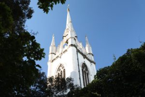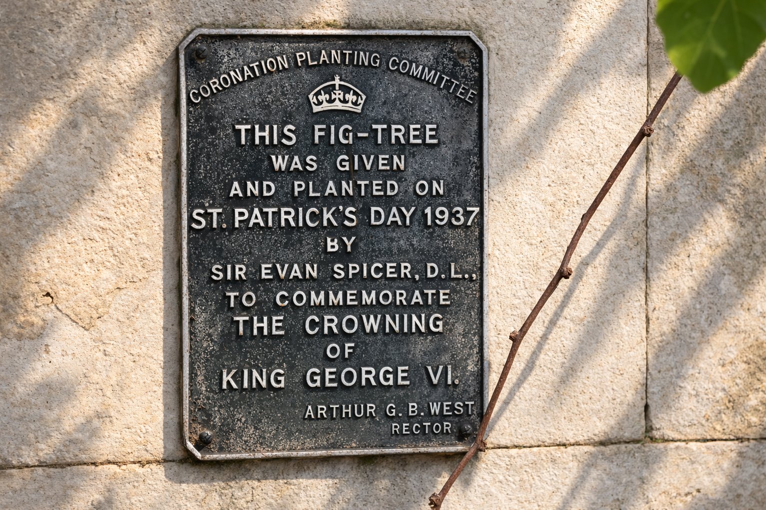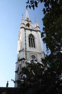 The 8 bells ring every fifteen minutes. Five of the bells were cast in 1951 and three in 1971 (one new and two recast) by the world’s largest bell foundry, John Taylor & Co whose origins date back to 1784. Five of these bells hung at St Dunstan-in-the-East Cathedral in London post World War II. This cathedral was severely damaged by a bomb during the blitz in early 1941 during World War II, leaving the tower, the steeple and a few walls standing. The 8 bells hanging at that time were all damaged during the bombing and all dated from early to the mid 1700s. An article dated March 20, 1941 in The Guardian quotes the rector as saying, “We are now a dangerous structure until repairs can be carried through. The worst bomb fell close to the plague pit and wrecked the Old Rectory. But the Catalpa tree stands, the ‘big tree’ noted by Sir Walter Raleigh when he returned from the founding of Virginia”.