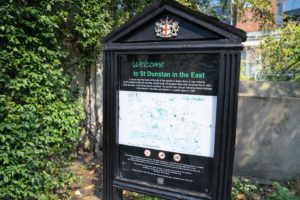 The grounds of St Dunstan-in-the-East Cathedral were converted into a public garden space in 1967. The garden and remnants of the church are completely surrounded by modern buildings; time spent inside this space is calming. Bring a good book and sit down on one of the benches for a while. These former church bells were sold back to John Taylor & Co and then somehow found their way to hang at Sterling in 1973. The St. Dunstan room, used for hospitality at the winery is named in homage to this former cathedral.