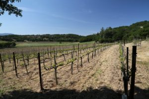The soils here are very rocky yet crumbly and during the dry season the vineyard can be a very dusty place. About a foot of topsoil is on the hillside part of the vineyard and below this is a white volcanic rock called tufa or compressed volcanic ash. Vines have to truly work to force their roots down into the ground – finding cracks and other soft spots in this particular type of rock. The vineyards are all managed organically (no pesticides or herbicides).