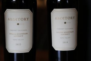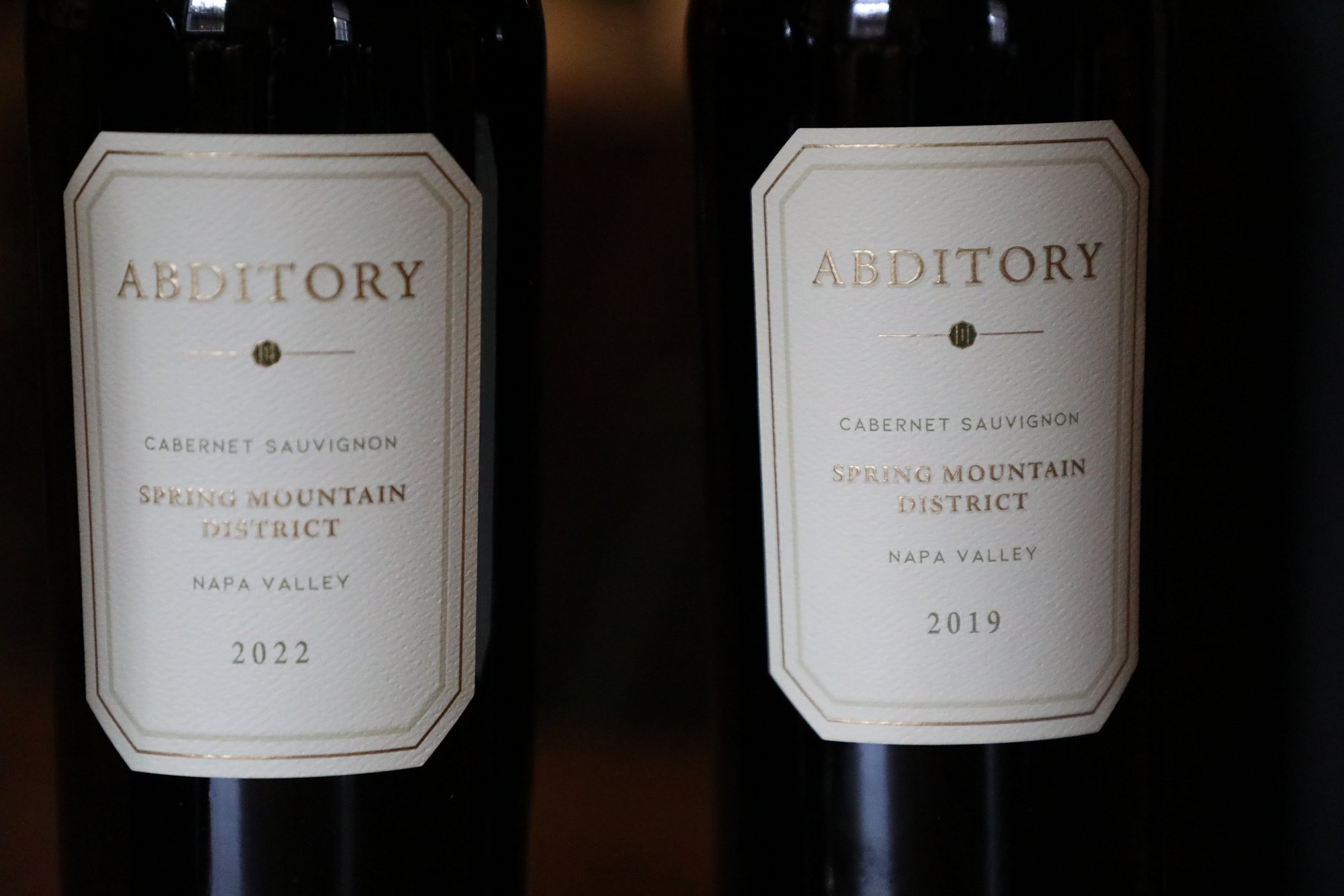 The 2022 Abditory Cabernet Sauvignon (100% varietal), Spring Mountain District; this wine is deep ruby and nearly opaque. It smells like Cabernet Sauvignon and dare we say, Spring Mountain and the west side of Napa Valley. Its aromas include red chili spice, an aromatic that is not green but lightly herbal – more like dried herbs, dried tobacco leaf, dried rose petals, with its fruit expressing scents of raspberry, red cherry and red plums. This wine tastes like dark raspberry, red plums, cherry, not fully ripe boysenberry and a light note of dried tobacco leaf. Savory, bright and superbly balanced, the mountain tannins are well-tamed; their texture lingers with a light gravelly feel, seamlessly integrated into the finish. This is a beautiful and lively expression of what was a very challenging vintage when mother nature hit the valley with severe heat centered around Labor Day weekend.